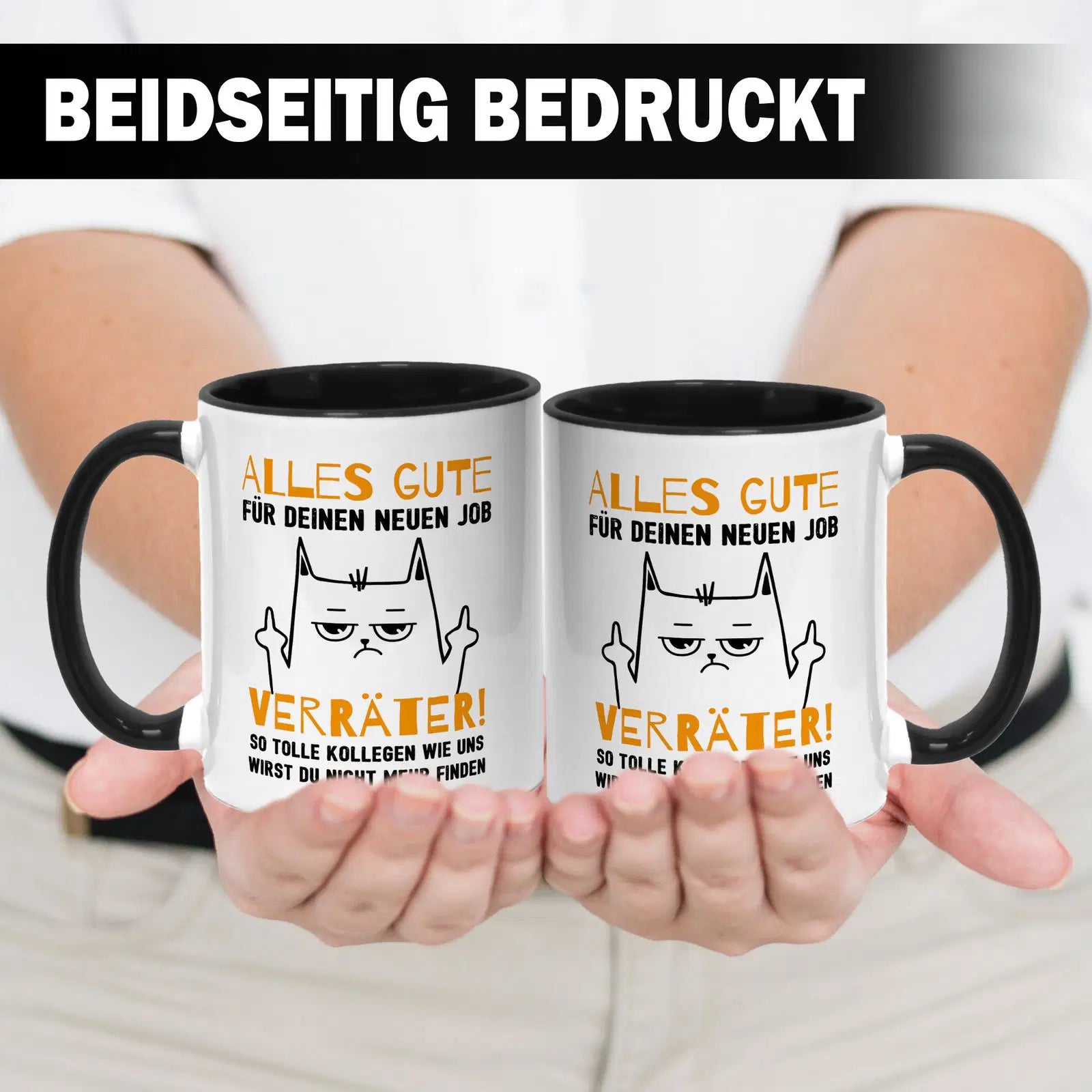 Tasse mit Spruch: Alles Gute für Deinen neuen Job Verräter! So tolle Kollegen wie uns wirst Du nicht mehr finden. 😾🖕