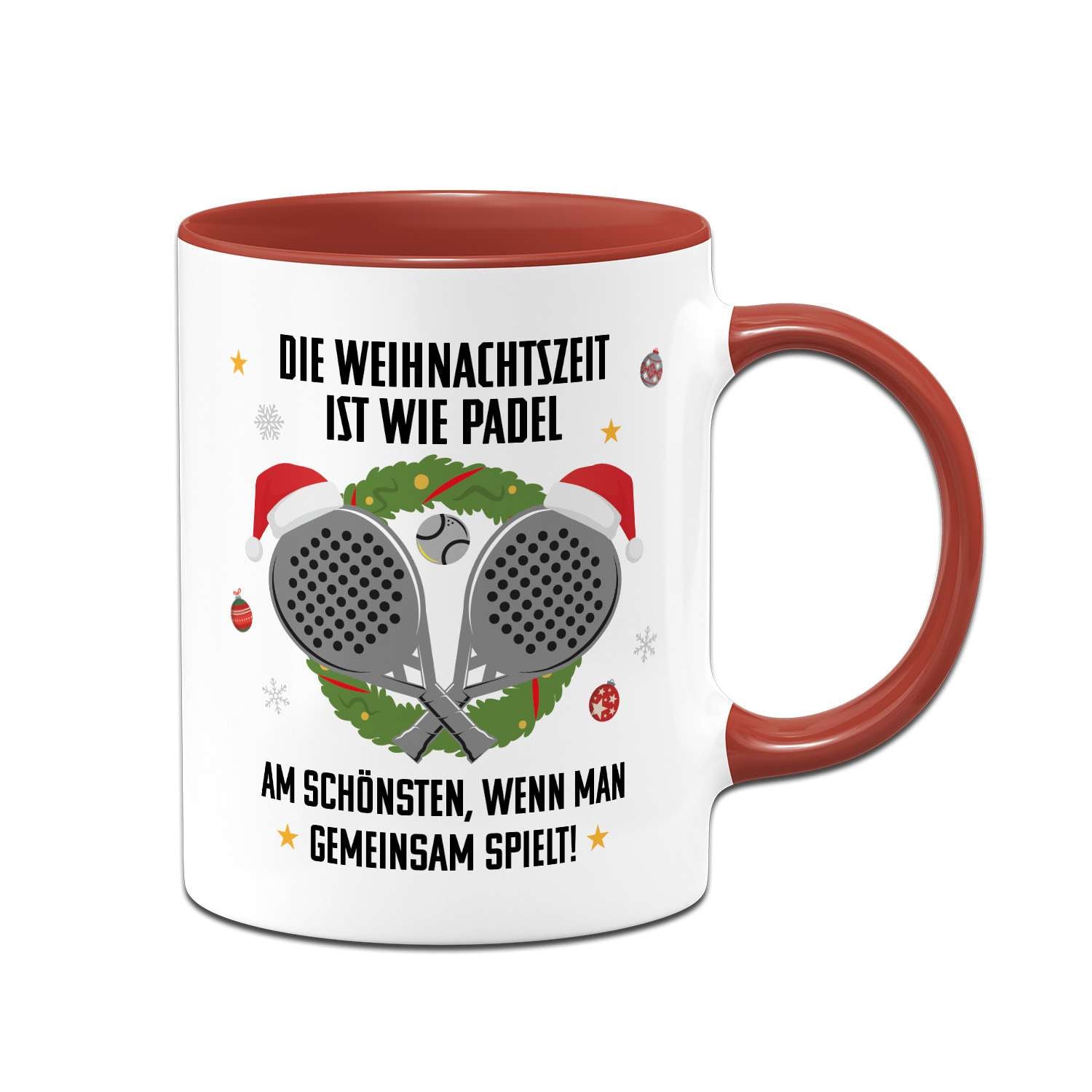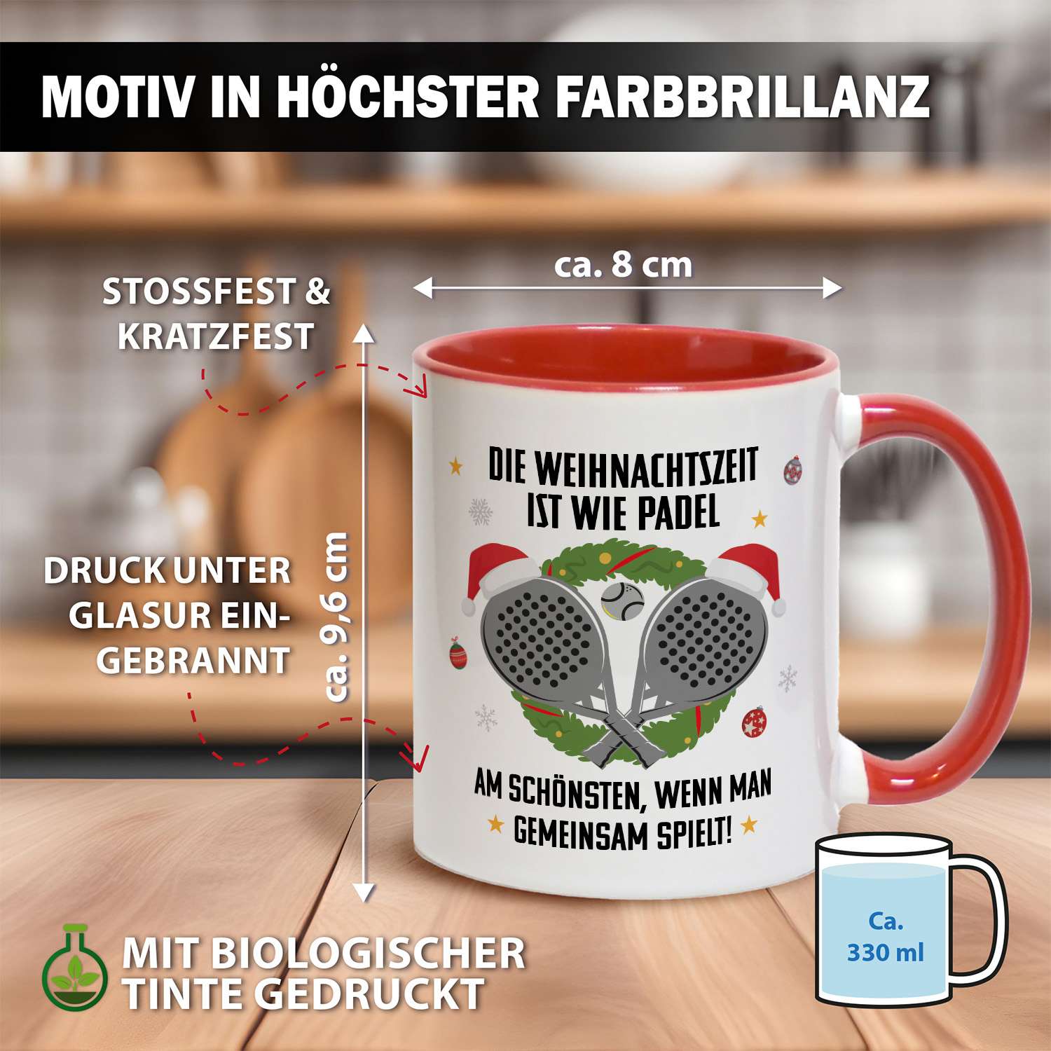 Tasse mit Spruch: Die Weihnachtszeit ist wie Padel 🎾 am schönsten, wenn man gemeinsam spielt! 🎅🏻⭐