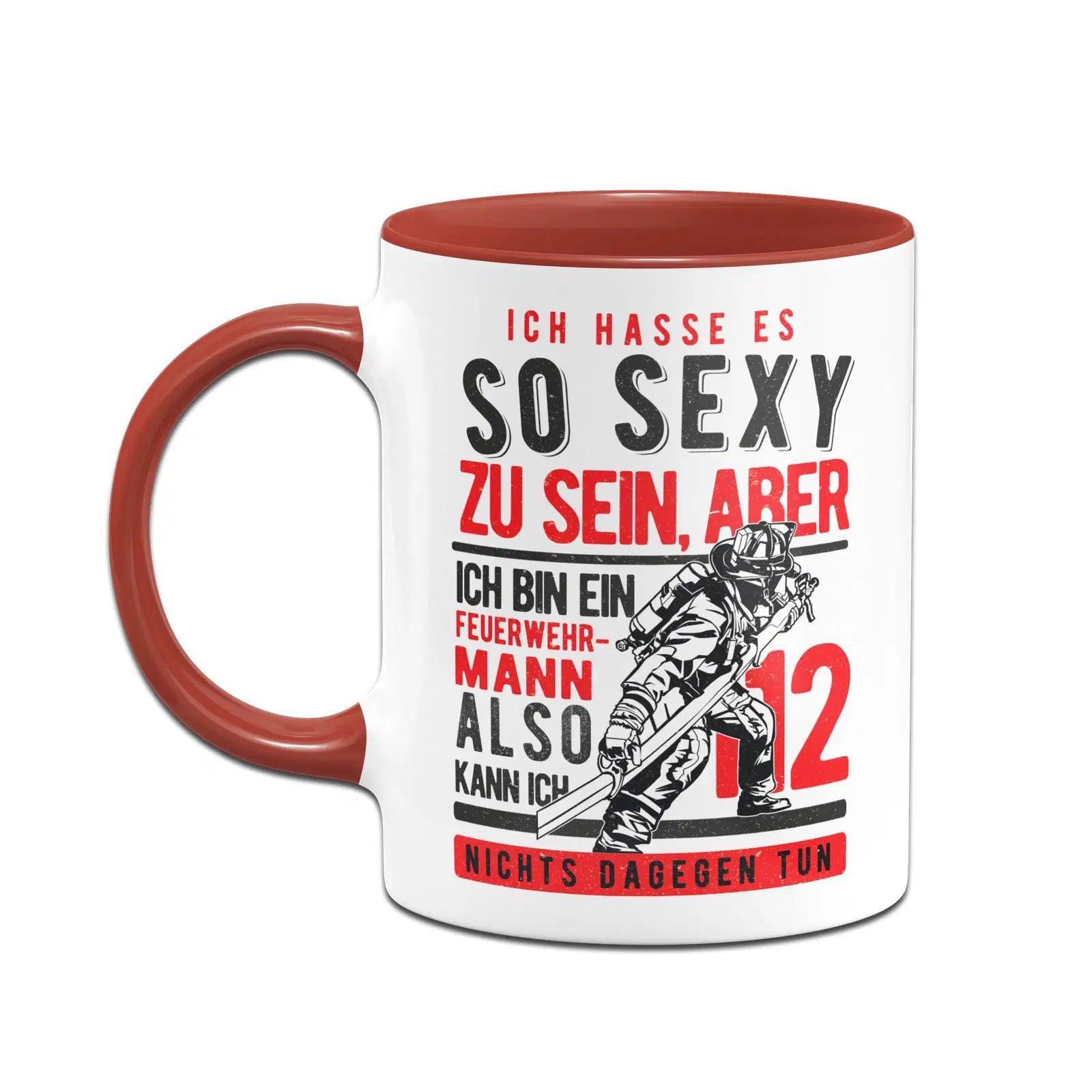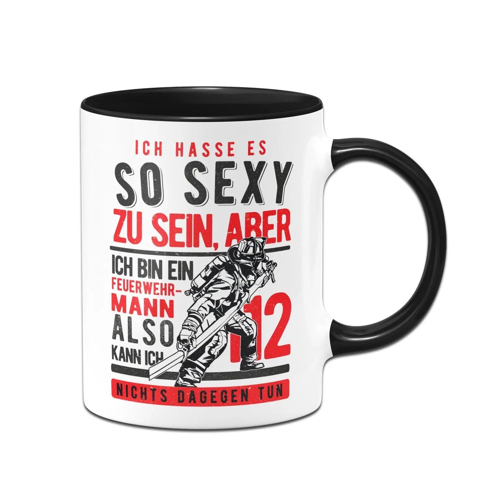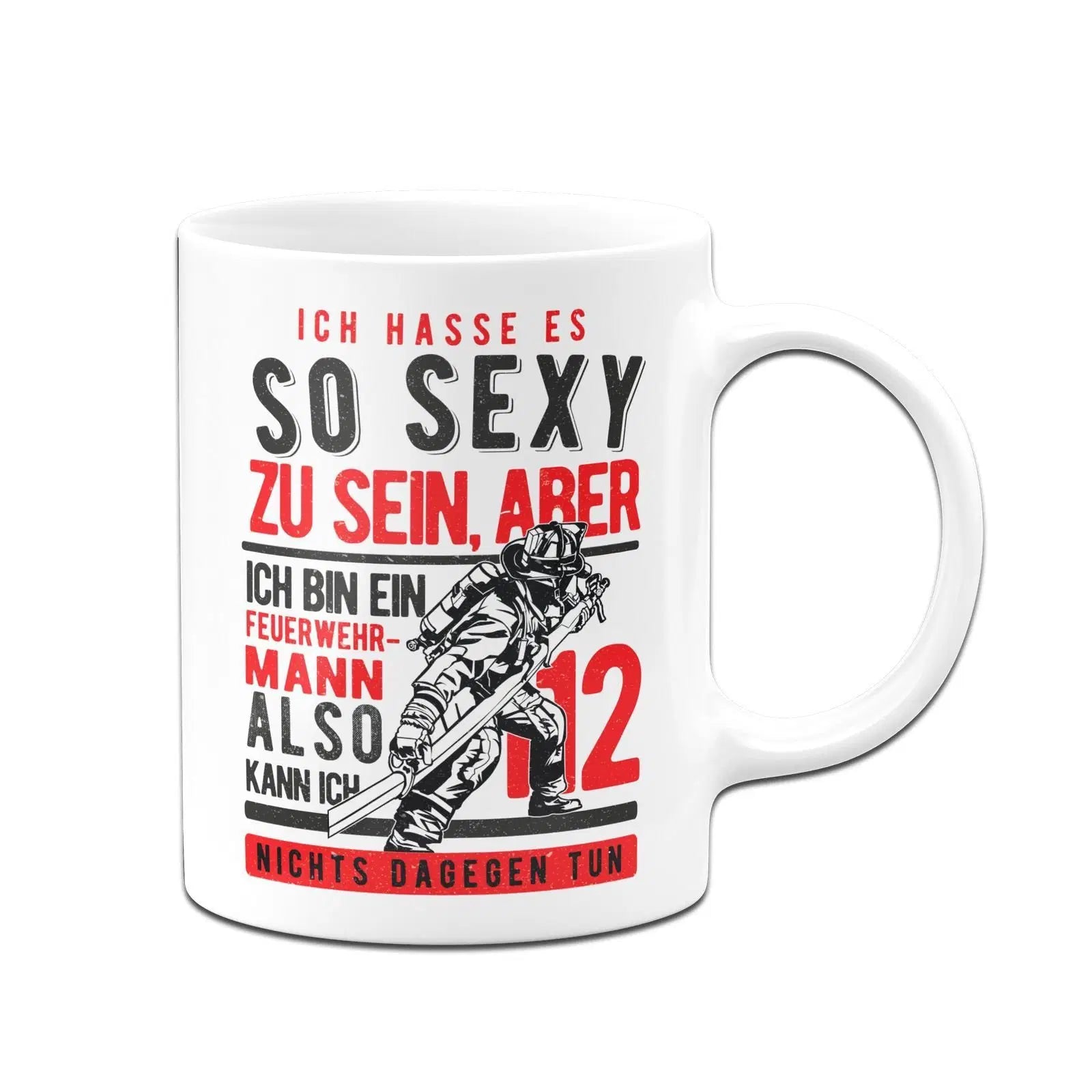 Tasse mit Spruch: Ich hasse es so sexy zu sein, aber ich bin ein Feuerwehrmann also kann ich nichts dagegen tun 👨🚒