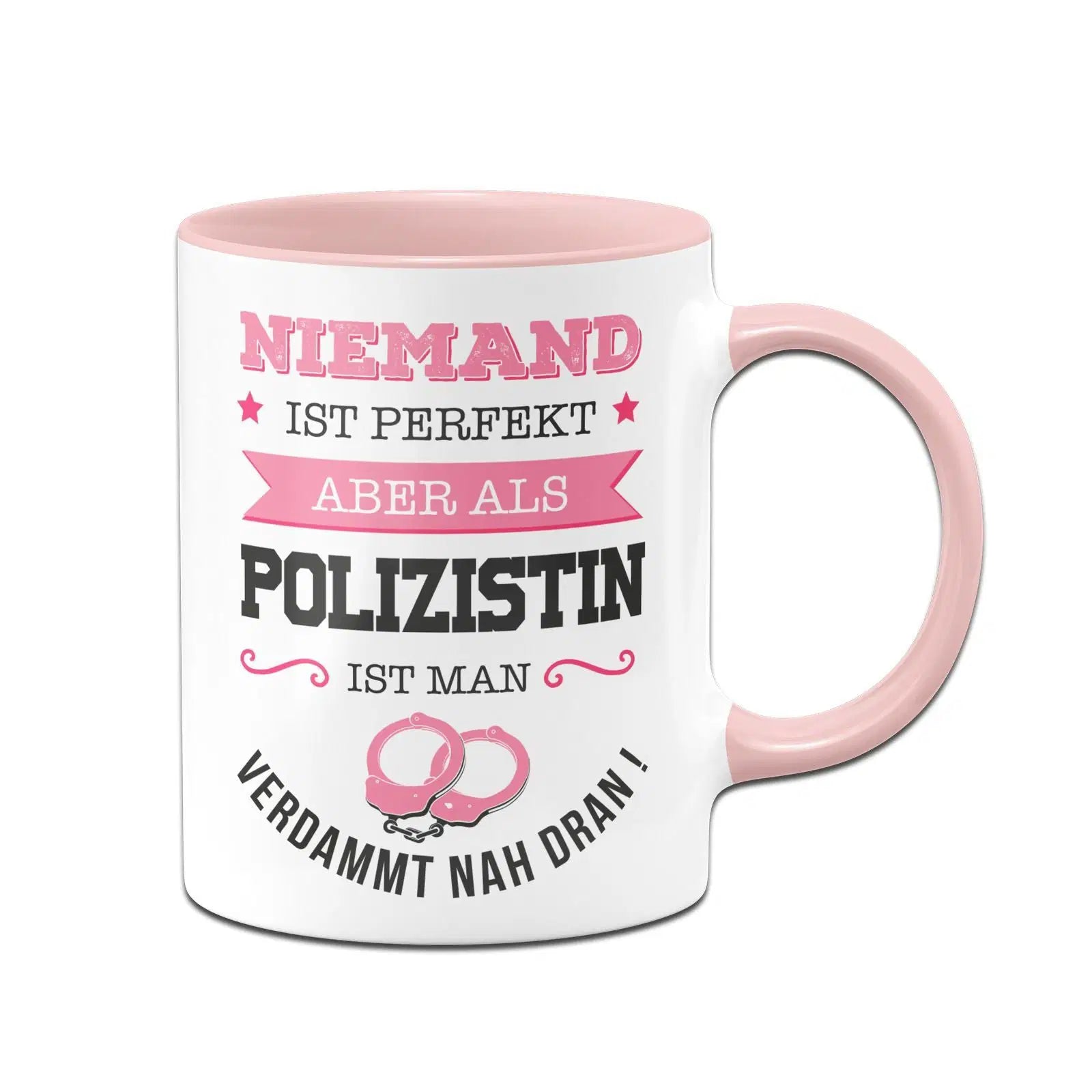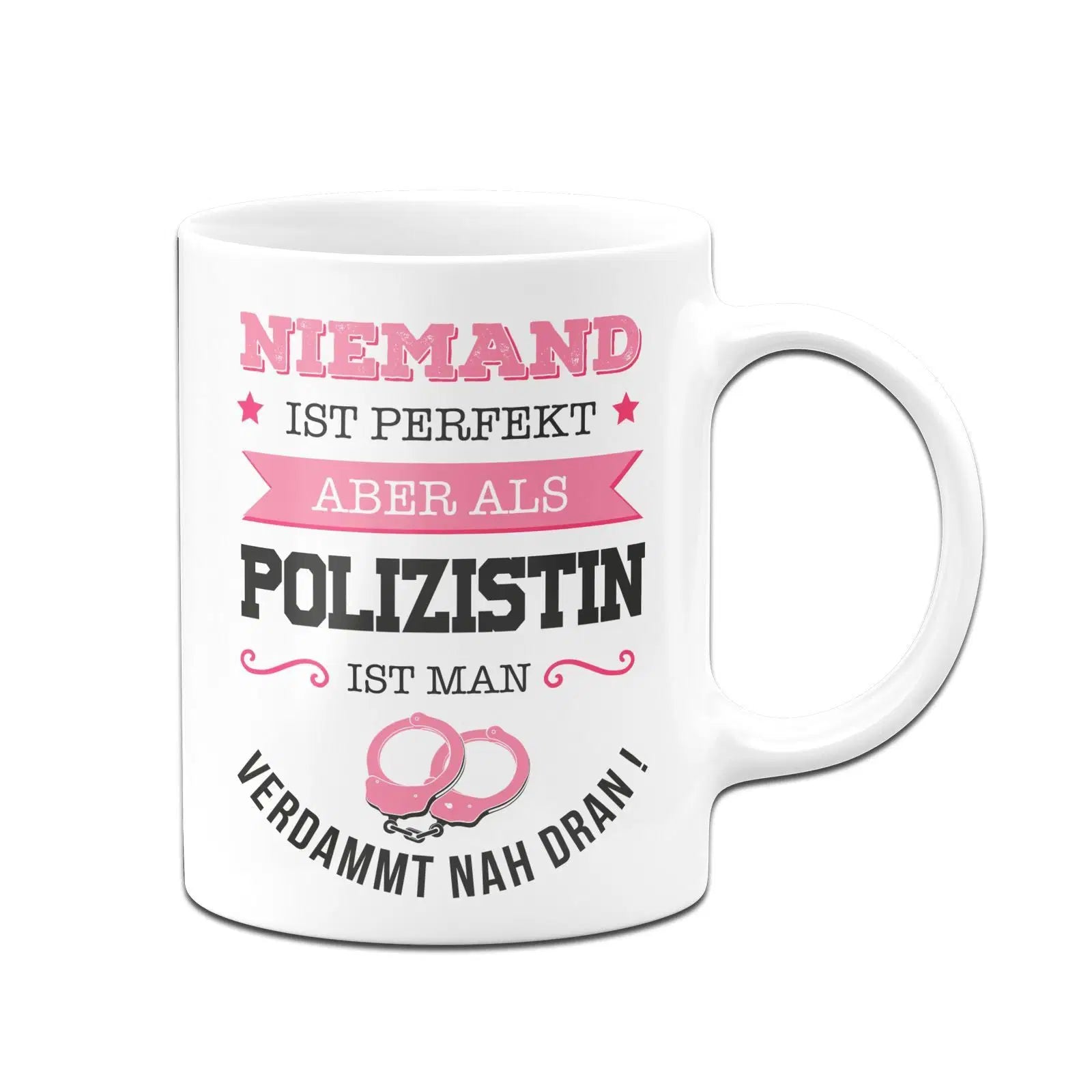 Tasse mit Spruch: Niemand ist perfekt aber als Polizistin ist man verdammt nah dran! ⭐