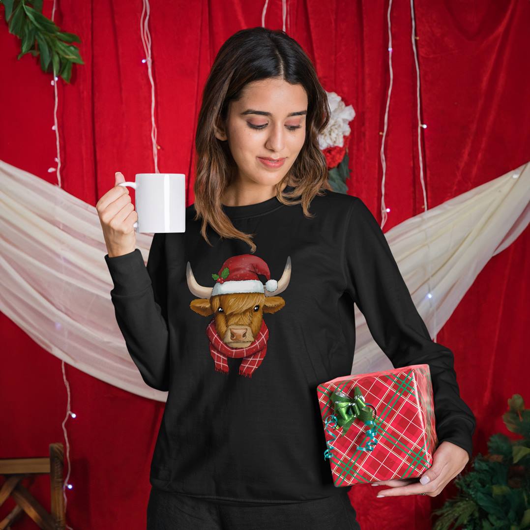 Hochwertiger Pullover mit weihnachtlichem schottischem Hochlandrind Motiv 🎅
