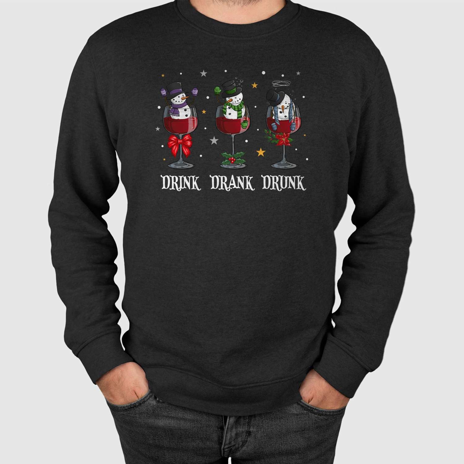 Hochwertiger Pullover mit lustigem „Drink Drank Drunk“-Weinmotiv 🍷✨